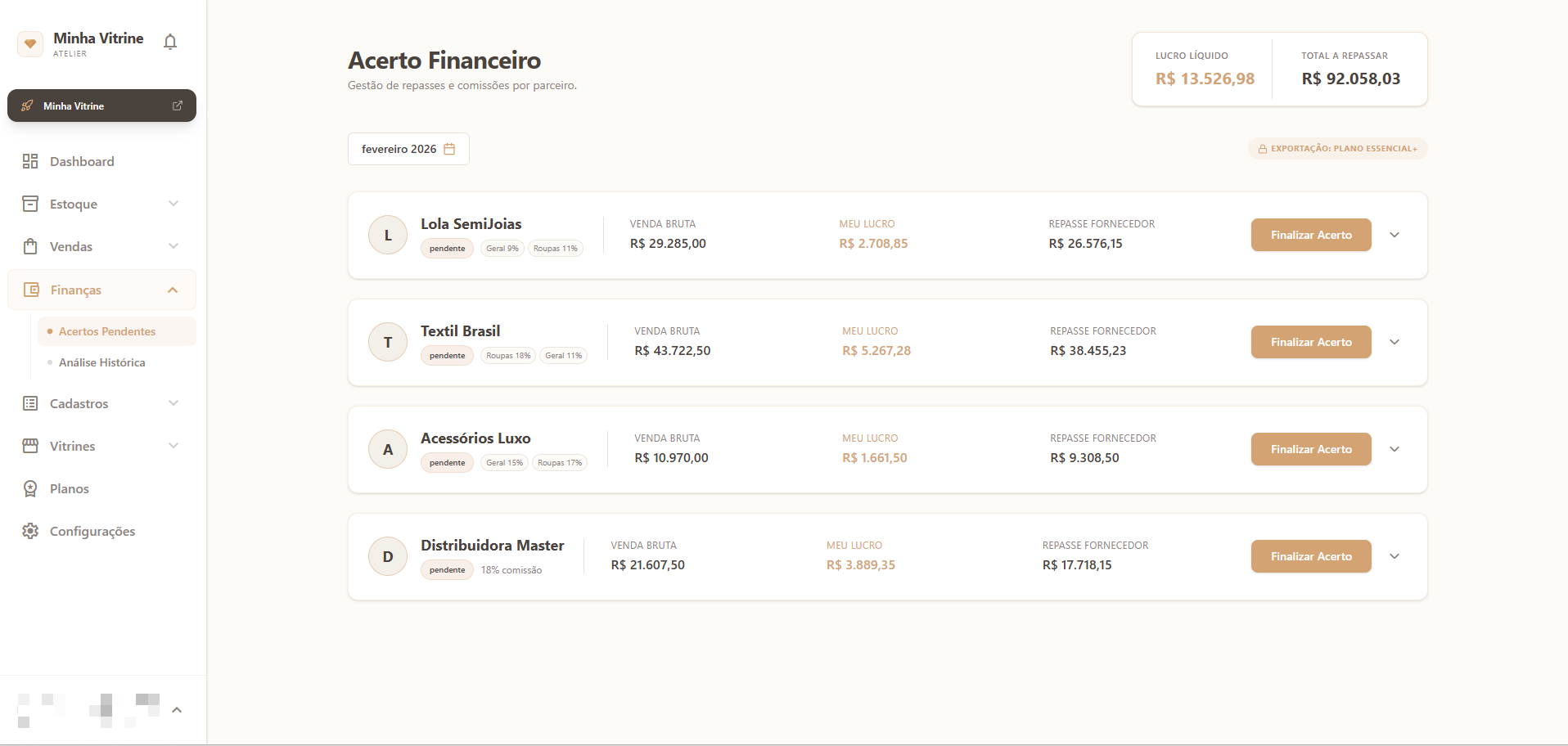 "Como fornecedora, agora tenho visão total de onde estão meus produtos. Os acertos mensais são feitos em minutos."