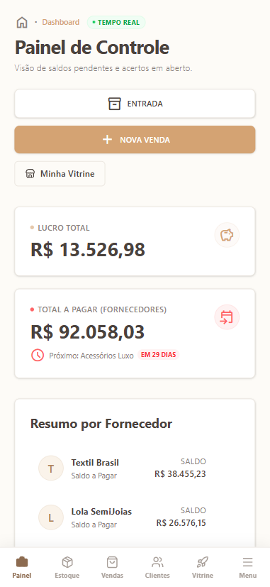 A elegância de uma vitrine digital com a precisão de um sistema financeiro. Abandone o caderno e eleve o nível da sua gestão.